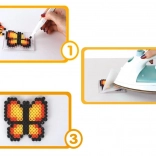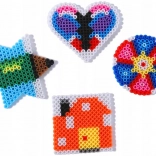 Leg de kralen op het pegboard, dek af met bakpapier en strijk – in een mum van tijd ontstaat een stevige mozaïek, klaar om neer te zetten of te dragen als hanger.