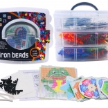 - ca. 6000 strijkkralen, 6 sjablonen, 10 pegboards, 12 zakjes kralen in diverse kleuren, 2 pincetten, 2 vellen bakpapier, opbergbox met vakjes