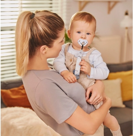 Voor het eerste gebruik de fopspeen om hygiënische redenen ongeveer 5 minuten in kokend water steriliseren. Na afkoeling het resterende water uit de fopspeen drukken. Was de fopspeen voor elk gebruik grondig in warm water. Gebruik geen antibacteriële of chemische reinigingsmiddelen. Overmatig gebruik van reinigingsmiddelen kan plastic onderdelen beschadigen. Doop de fopspeen nooit in zoete substanties of medicijnen – dit kan tandglazuur beschadigen. Gebruik een fopspeen maximaal 1–2 maanden en vervang deze daarna om hygiënische en veiligheidsredenen. Als de fopspeen in de mond van het kind terechtkomt, raak niet in paniek – de fopspeen is zo ontworpen dat het kind deze niet kan inslikken, en u kunt hem in zo’n geval veilig uit de mond verwijderen. Verwijder de fopspeen zo voorzichtig mogelijk. Bewaar de fopspeen in een schoon, droog en afgesloten doosje. We raden aan om fopspenen niet te gebruiken bij kinderen ouder dan 3 jaar.