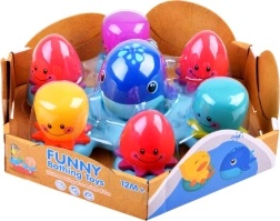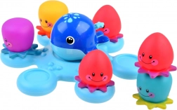 Deze aantrekkelijke badset combineert plezier en leren. Kinderen kunnen zien hoe de walvis drijft, water spuit en hoe de kleurrijke octopusjes blijven drijven op het water of op gladde oppervlakken. De set ontwikkelt oog-handcoördinatie, stimuleert zintuiglijke waarneming en verandert dagelijkse hygiëne in een vrolijk ritueel.