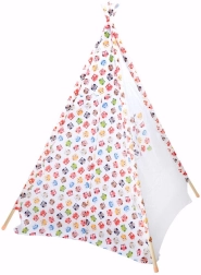 De kinder teepee tent is de ideale plek voor kleine avonturiers om hun eigen wereld te ontdekken. Eenvoudige montage maakt het mogelijk de tent snel op te zetten, thuis of in de tuin. De tent heeft stoffen banden om de zijkanten vast te zetten, wat de in- en uitgang vergemakkelijkt. Een raam aan de zijkant biedt zicht op de omgeving en geeft de tent authenticiteit.