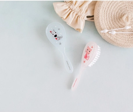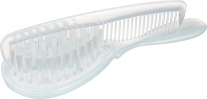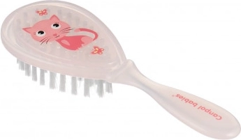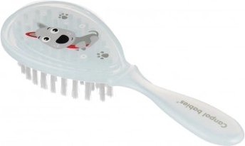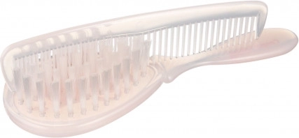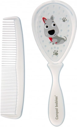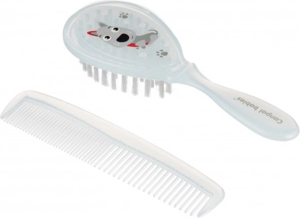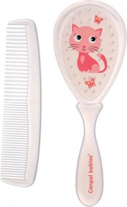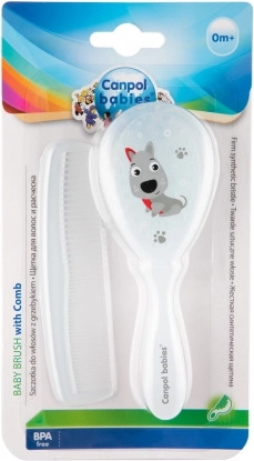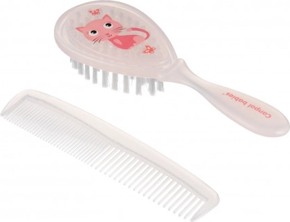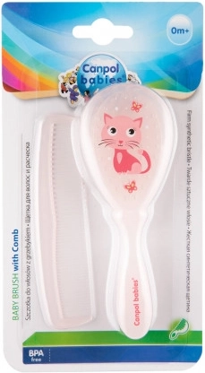 Haarborstel met kam voor de dagelijkse haarverzorging van je baby. De kam heeft afgeronde tandjes die de gevoelige huid niet irriteren. De borstel met zachte synthetische haren masseert het babyhoofdje zachtjes zonder het haar statisch te maken. De set is verkrijgbaar in twee varianten.De kam heeft afgeronde tandjes – irriteert de gevoelige kinderhuid niet.De borstel is gemaakt van synthetische haren – masseert het hoofdje van het kind zachtjes zonder statisch haar te veroorzaken.Gebruiksaanwijzing:Houd schoon. Was in warm water met een mild reinigingsmiddel. Spoel grondig af. Spoel de borstel vóór het eerste gebruik met kokend water en droog met een föhn.Waarschuwing! Belangrijk voor de gezondheid en veiligheid van je kind!Controleer vóór elk gebruik de staat van het product. Gebruik het product niet verder bij de eerste tekenen van slijtage of beschadiging – vervang het door een nieuw exemplaar. Alleen gebruiken onder toezicht van een volwassene. Dit product is geen speelgoed. Buiten het bereik van kinderen houden.De kam en borstel voldoen aan de eisen van:Richtlijn 2001/95/EG van het Europees Parlement en de Raad betreffende algemene productveiligheid.