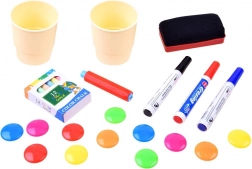 Magneten, drooguitwisbare stiften met wisser, wisser, gekleurd krijt, krijthouder, bekers, plankje