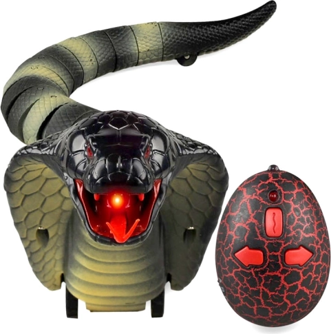 Deze op afstand bestuurbare cobra bootst de echte beweging van een slang natuurgetrouw na en valt op door de gedetailleerde afwerking, inclusief kap en opvallende ogen. Met de compacte eivormige controller stuur je hem gemakkelijk waar je maar wilt – ideaal voor thuisplezier, een kleine party-surprise of als origineel cadeau.