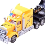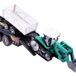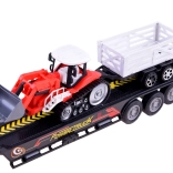 De trekker met platformdieplader vervoert veilig de tractor met aanhanger. Een combinatie voor urenlang fantasierijk spel.