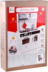 Grote houten keuken met licht- en geluidseffecten, die dankzij de gedetailleerde afwerking en stijlvolle Scandinavische design onvergetelijk speelplezier biedt voor kleine chef-koks.