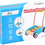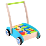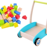 Houten loopwagen met gekleurde blokken biedt plezier en helpt bij de motorische ontwikkeling van kinderen. De blokken zijn perfect voor kleine handjes en de loopwagen is een geweldige assistent voor de eerste stapjes.
