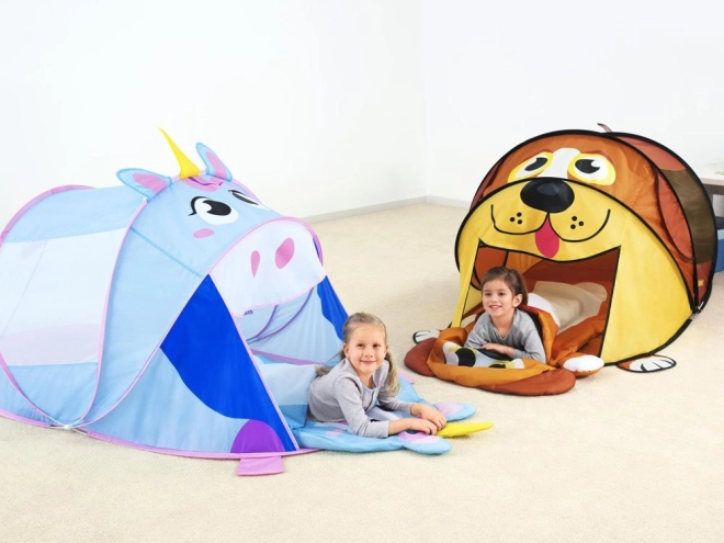 Schattige kinder pop-up tent in de vorm van een eenhoorn van BESTWAY tovert elke kamer, tuin en zelfs het strand om tot een sprookjesrijk. Dankzij het snelle zelfuitklappen, het lichte materiaal en de gaasraampjes voor ventilatie is hij ideaal voor creatief spelen en ontspanning. De bodem zorgt voor een schone en comfortabele speelplek en met de afmetingen 182 × 96 × 81 cm is er genoeg ruimte om te spelen en even uit te rusten.