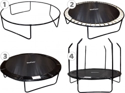 - trampoline met zwart gelakte constructie en beschermrand over de veren,