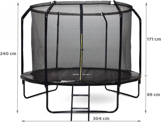 Het model SKYFLYER 10 ft (304 cm) is een complete tuintrampolineset voor het hele gezin. Het interne veiligheidsnet met rits en gesp, U-poten voor stabiliteit en de 8-voudig gestikte springmat van stevig polypropyleen bieden een lange levensduur en veilig springplezier. De montage is eenvoudig en dankzij de ankers en banden staat de trampoline stevig, zelfs bij hardere wind.