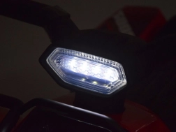 De sportieve mini-quad voor de allerkleinsten is een uitstekende keuze voor de eerste ritten. Dankzij de compacte afmetingen past hij gemakkelijk in huis en rijdt hij net zo goed op gladde stoepen of op de binnenplaats. Starten gebeurt met een druk op de rode knop op het handvat; het bedieningspaneel biedt geluidseffecten en een claxon voor nóg meer plezier.