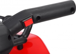 Start de rit door op de rode knop op het handvat te drukken – ideaal voor kleine kinderhanden en veilige starts zonder ingewikkelde bediening.