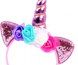 Schattige set voor kleine modeprinsesjes met een eenhoorn-haarband, een kleurrijke ketting en twee ringen. De haarband heeft een zachte, glinsterende hoorn, een satijnen bekleding voor comfort en bloemversieringen. Ideaal voor carnaval, verjaardagsfeestjes en alledaags verkleedspel als feeën en prinsessen. Comfortabel draaggevoel, sprankelende details en een magisch eenhoornontwerp laten elke outfit stralen.