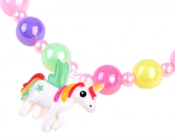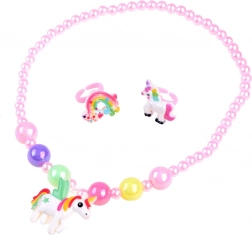 De kleurrijke kralenketting met een eenhoornhanger en twee ringen maken de outfit af en stimuleren magisch speelplezier.
