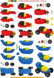 Onderdeel van de set zijn wielen en verbindingsstukken waarmee rijdende voertuigen en andere functionele constructies ontstaan die zowel verbeelding als motoriek stimuleren.