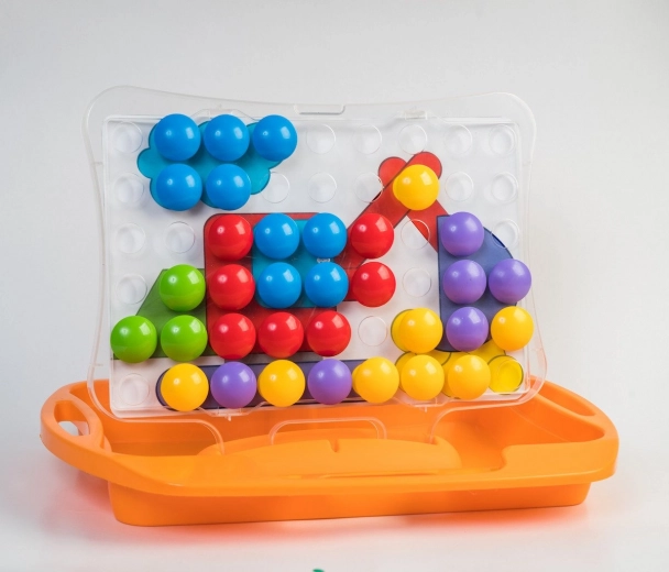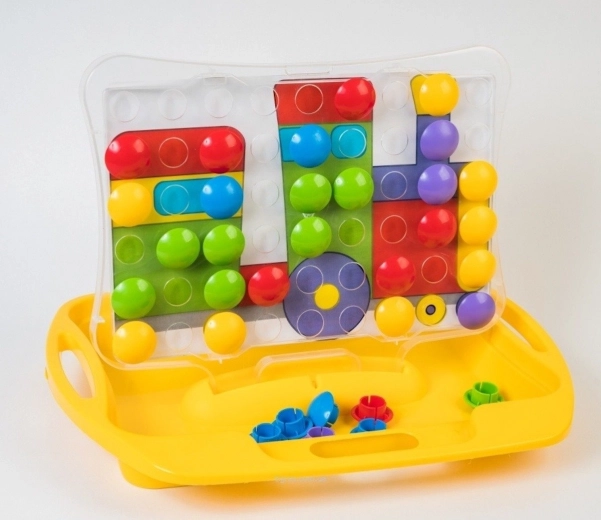 De educatieve mozaïek is ontworpen om creativiteit en de ontwikkeling van de fijne motoriek bij kinderen te stimuleren. Het bestaat uit 54 gekleurde elementen in de vorm van “pinnen” die vrij in de openingen van het basisbord kunnen worden geplaatst, zodat kinderen hun eigen unieke composities kunnen maken.