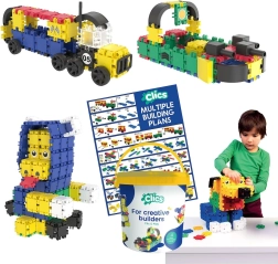 Ontdek de creatieve bouwset CLICS in een emmer met 275 stukken en 10-in-1 modellen. Grote snap-onderdelen van 5 × 5 cm klikken gemakkelijk in elkaar en stimuleren fantasie, fijne motoriek en logisch denken. Bouw voertuigen, dieren en 2D/3D-modellen en beleef uren speelplezier met veilige, hoogwaardige onderdelen uit België.