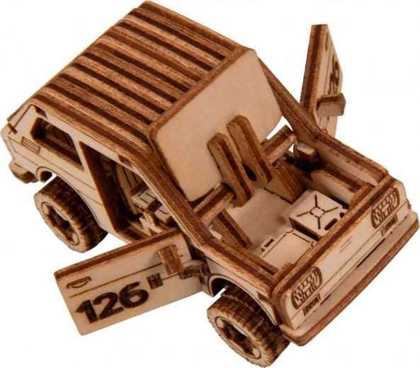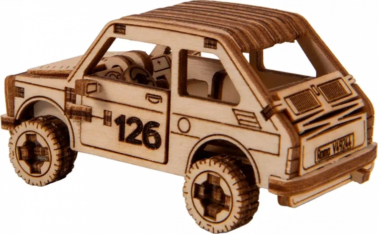 Het resultaat is een gedetailleerde miniatuur met een natuurlijke berkenhouttextuur, die je verder kunt personaliseren met verf. Een geweldig cadeau voor liefhebbers van auto’s, techniek en doe-het-zelfprojecten.