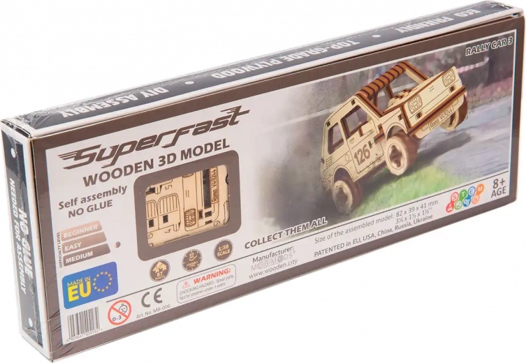 Ontdek leuk en creatief mechanisch 3D-puzzelwerk, waarmee je eenvoudig je rallyauto zonder lijm in elkaar zet. Met 87 nauwkeurig uitgesneden onderdelen van berkenmultiplex ontstaat een stijlvolle decoratie en een verzamelstuk. Eenvoudige montage is leuk voor beginners en gevorderden, en de mogelijkheid tot eigen lakwerk stimuleert de creativiteit van het hele gezin.
