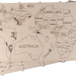 De kaart is uitgesneden uit berkenmultiplex, wat een natuurlijke en elegante uitstraling aan het interieur geeft.