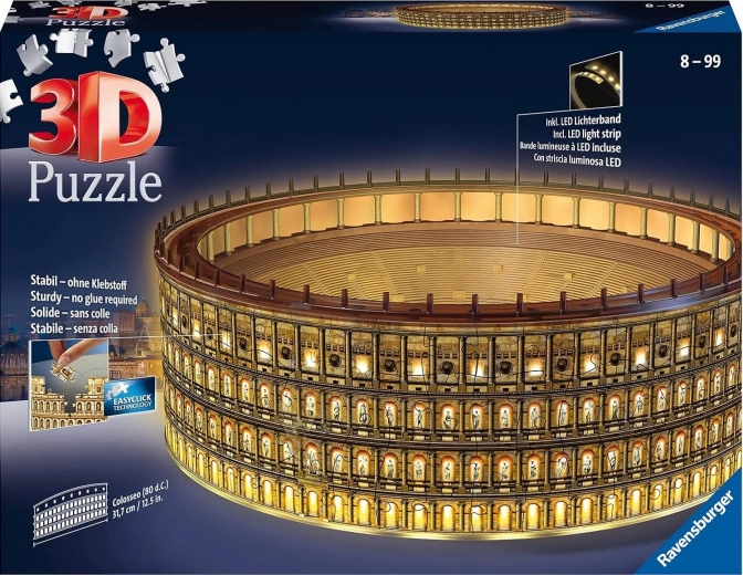 Bouw een fascinerend model van het Romeinse Colosseum met deze 3D-puzzel van het gerenommeerde Duitse merk RAVENSBURGER. Speciale flexibele stukjes passen dankzij de EasyClick-technologie perfect op hun plaats en creëren een stabiele en indrukwekkende constructie zonder lijm.