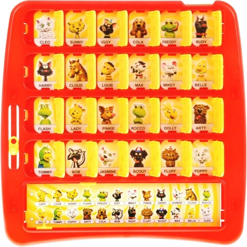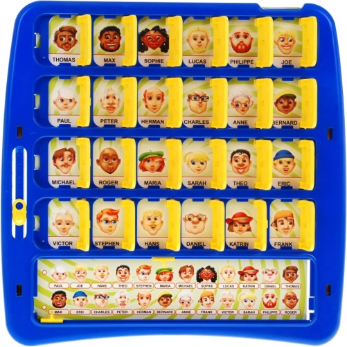 | Spelers zitten tegenover elkaar, elke speler heeft een console voor zich staan. Spelers stellen elkaar vragen waarop alleen met "ja" of "nee" geantwoord kan worden. Spelers letten goed op elkaar. Alle vensters van de console moeten open staan. Het spel bestaat erin dat je op basis van de gestelde vragen de door je tegenstander gekozen persoon raadt. Elke speler kiest één van de personages op de personagekaart. Hoe sneller je het personage van de tegenstander bepaalt, hoe sneller je de winnaar wordt! Extra variatie wordt geboden door de spelvarianten "Kampioenschap" en "Uitdaging". Winnaar is de speler die als eerste raadt wie zijn tegenstander is. | |