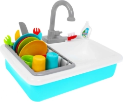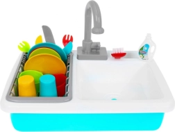 Deze unieke kindergootsteen biedt niet alleen de mogelijkheid om een echte keukenwasbak na te bootsen, maar stimuleert ook spel en de ontwikkeling van gewoontes. Na het vullen van het reservoir met water en het draaien aan de kraan stroomt er een zachte waterstraal, zodat ouders zich geen zorgen hoeven te maken over rommel. De gootsteen is ideaal voor jongens en meisjes en biedt een realistische speelervaring.