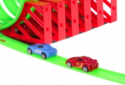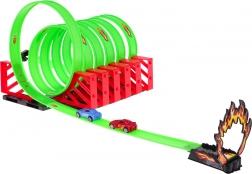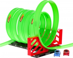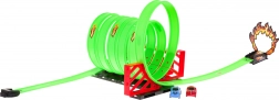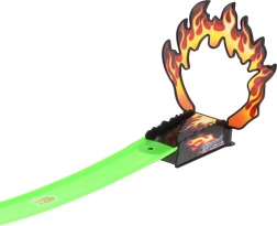 Deze kleurrijke racebaan met een totale lengte tot 185 cm zorgt voor een flinke dosis adrenaline. Het autootje schiet over het rechte stuk, neemt 6 soepele loops en vliegt tenslotte door de “vuur”-ring. Dankzij de Pull-Back aandrijving heb je geen batterijen nodig – trek het autootje licht naar achteren en laat het rijden.