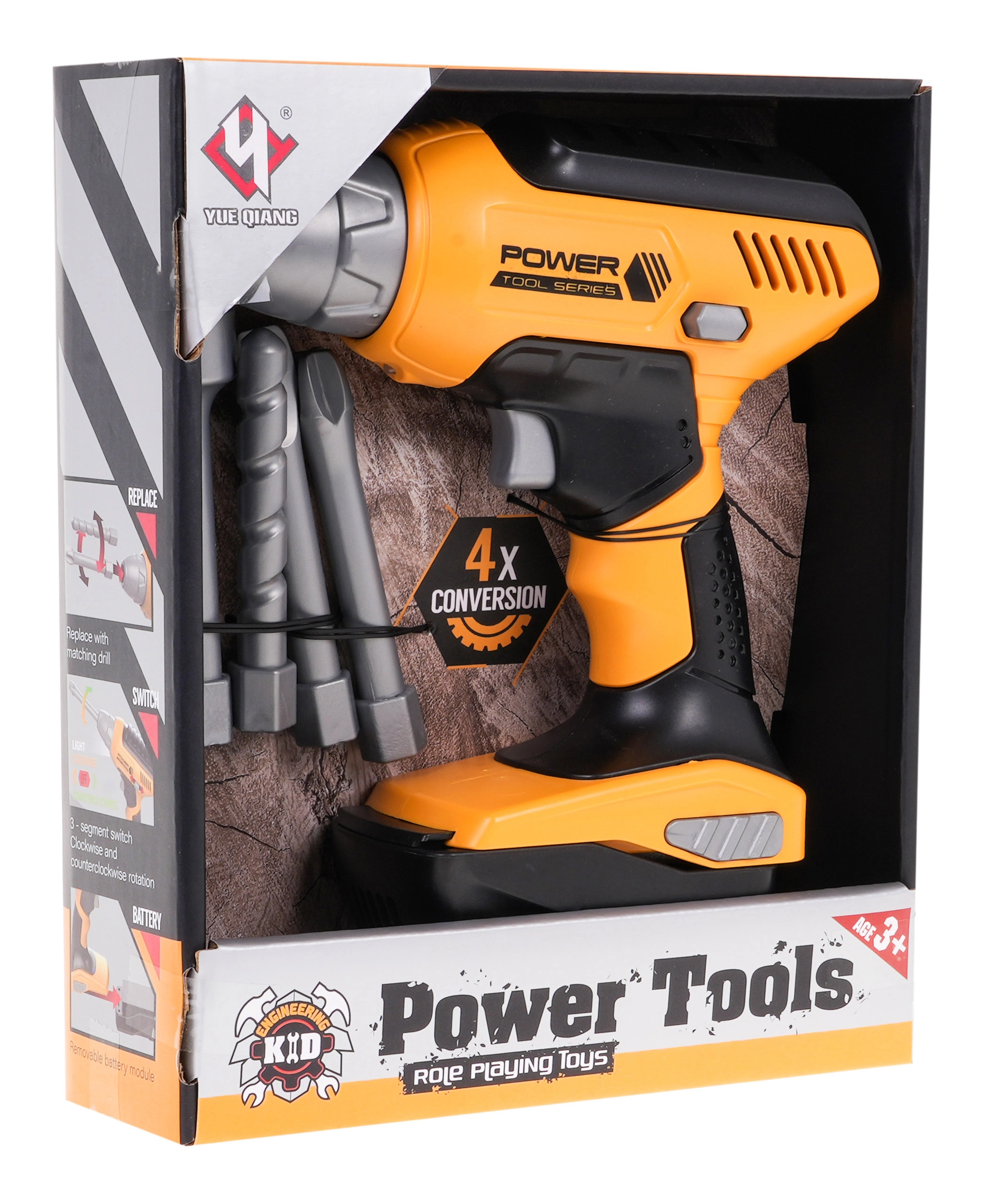 De boormachine ziet eruit als echt gereedschap en biedt geluids- en lichteffecten, waardoor hij realistisch en aantrekkelijk is voor kinderen.