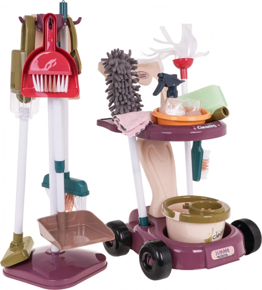 De kinder-schoonmaakset bevat tools zoals een mop, borstel, bezems en een kleine stofzuiger die echt gereedschap nabootsen en realisme aan het spel toevoegen.