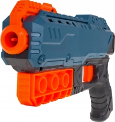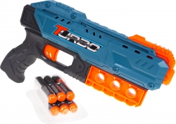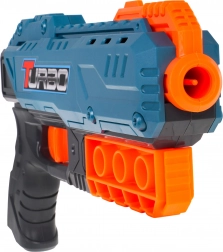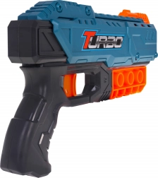 Het kinderpistool Turbo biedt actievermaak zonder batterijen. Plaats een foamkogel in de loop, trek het mechanisme naar achteren tot het klikt en haal de trekker over. De zachte projectielen met rubberen punt zijn ontworpen voor veilig spel en vliegen verrassend ver, zodat kinderen zowel binnen als buiten veel plezier hebben.