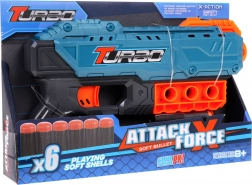 Onder de loop zijn drie openingen beschikbaar om reservekogels op te bergen, zodat je snel kunt doorgaan met spelen. De ergonomische greep en het lichte ontwerp maken de Turbo tot een uitstekende keuze voor jonge schutters die eenvoudige bediening en betrouwbare prestaties zoeken.