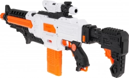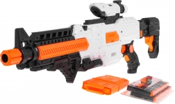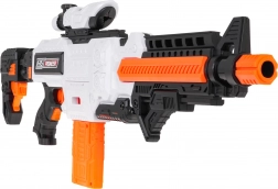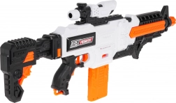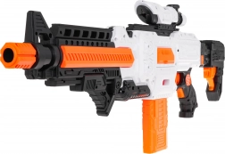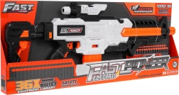De Fast Pioneer blaster in wit‑oranje‑zwarte uitvoering is ideaal voor gevechten binnen en buiten. Het half‑semi-automatische mechanisme met veer zorgt voor snelle en vloeiende enkelvoudige schoten. Laad het magazijn, houd de aan/uit-knop ingedrukt, richt en haal de trekker over.