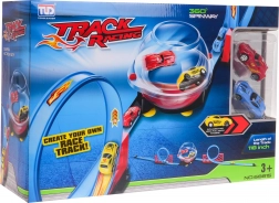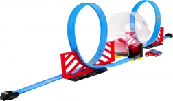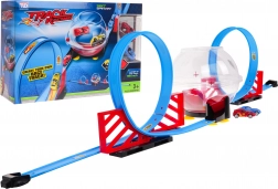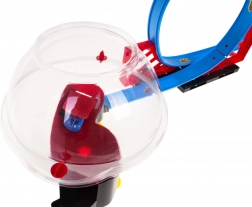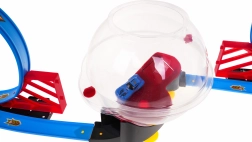 Bouw je eigen race-arena met een dubbele baan, twee loops en een centrale transparante bol. Dankzij de twee onafhankelijke trajecten kunnen kinderen echte snelheidsduels organiseren. Door het autootje naar achteren te trekken activeer je de pull-back-aandrijving en schiet het autootje de loop in, klikt in de bol en maakt binnenin spectaculaire rotaties.