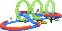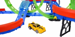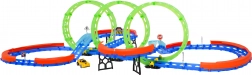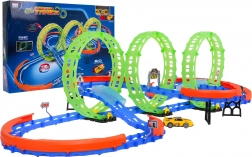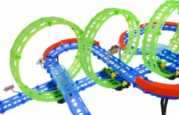 Bouw je eigen racecircuit met drie grote loops en geniet van een spannende rit met het LED-autootje. Dankzij de fluorescerende elementen licht de baan op in het donker, waardoor races er ook ’s avonds geweldig uitzien. Een stabiele constructie, beschermende hekjes en afwisselende secties zorgen voor een soepele doorgang en hoge snelheid.