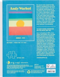 Ontdek de originele puzzel met ANDY WARHOL: Zonsondergang met 500 stukjes, waarin kunst en plezier samenkomen tot één uitzonderlijke ervaring. Dankzij de compacte afmetingen na het leggen en de elegante verpakking is het perfect als cadeau en als designstuk voor in de boekenkast.