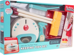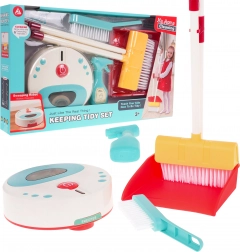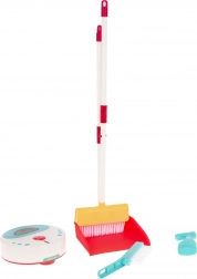 De set bevat rijke accessoires voor een complete schoonmaakrollenspel: bezem met blik op standaard, handstoffer en een veilige nepflacon reinigingsmiddel. Ideaal voor het trainen van fijne motoriek, verantwoordelijkheid en dagelijkse gewoontes.