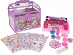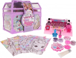 Bevat verschillende kleuren nagellakken, lipgloss en oogschaduw. Alles is verpakt in een decoratieve doos met een eenhoornmotief.