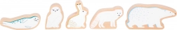 Figuren van een ijsbeer, sneeuwuil, poolvos, zeehond en haas inspireren tot verhalen en stimuleren de fantasie tijdens het spelen.