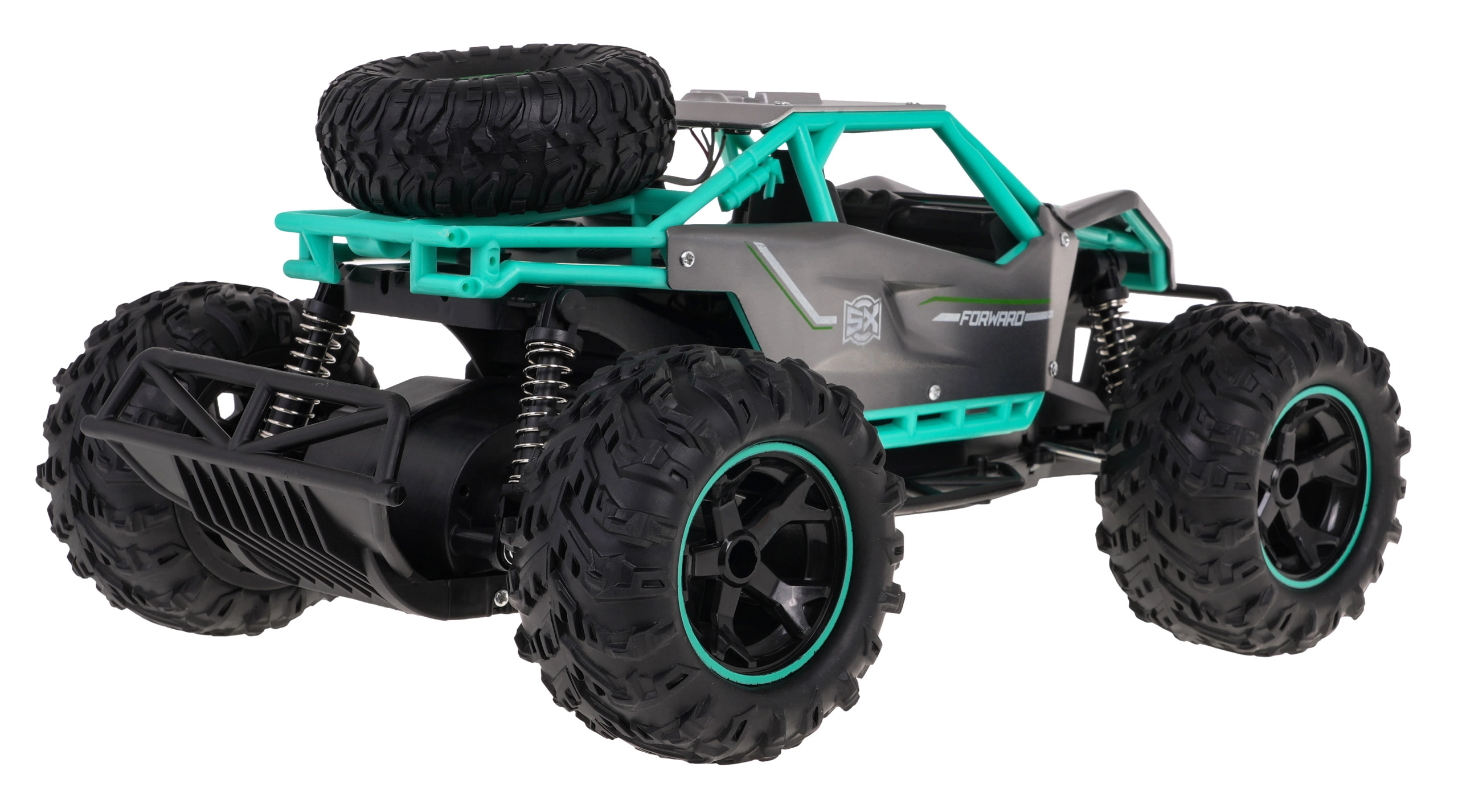 Sterke rubberen banden en een geveerd chassis zorgen ervoor dat de auto alle obstakels aan kan voor nog meer speelplezier.