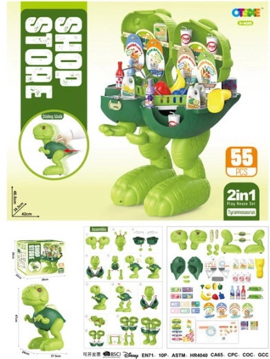Je verandert de dinosaurus eenvoudig in een winkel, wat dubbele pret en educatie biedt. Kinderen kunnen met dinosaurussen spelen en tegelijk boodschappen doen in een klein winkeltje.