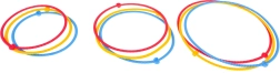 Het spel heeft gekleurde ringen in rood, blauw en geel die aantrekkelijk zijn voor kinderen.