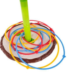 Behendigheidsspel Vrolijk Vogeltje is een leuk speelgoed geschikt voor kinderen vanaf 3 jaar. Het spel ontwikkelt reflexen, concentratie en oog-handcoördinatie door het gooien van gekleurde ringen op een paal.