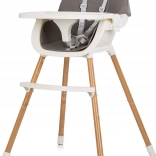 Eenvoudige ombouw maakt het mogelijk de stoel aan de eettafel te gebruiken of zelfstandig in de lagere variant.
