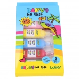 - 4 heldere kleuren: roze, geel, lichtblauw en rood
