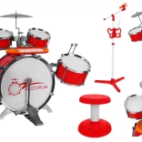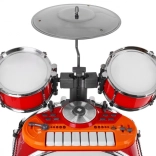 Deze grote muziekset voor kinderen in het rood combineert realistische drums met een elektronisch keyboard en een microfoon op standaard. Kinderen spelen veilig dankzij de zachte puntjes van de drumstokken die de trommels beschermen en genieten van lichteffecten en de vele keyboardfuncties. De set is ideaal voor de eerste muzikale stapjes, ritmeontwikkeling en creativiteit.