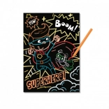 De DODO krasplaat met superheld is een ideale keuze voor kinderen die van knutselen en kleuren houden. Volg simpelweg de voorgedrukte lijnen en onthul stap voor stap met de krasschrijfpen de stralende ondergrond – het resultaat is een origineel plaatje dat ook als decoratie plezier geeft.