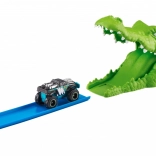 Zuru Metal Machines Krokodillenaanval is een racebaan die je meeneemt naar een wereld vol actie. Ga de confrontatie aan met de gevaarlijke krokodil die op je Monster Truck loert. Haal voldoende snelheid om de krokodillenkaken veilig te passeren.