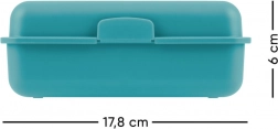 De box heeft een breedte van 17,8 cm en een hoogte van 12,2 cm, wat voldoende ruimte biedt voor het bewaren van diverse etenswaren en spullen. De veilige sluiting zorgt ervoor dat de inhoud op zijn plek blijft.