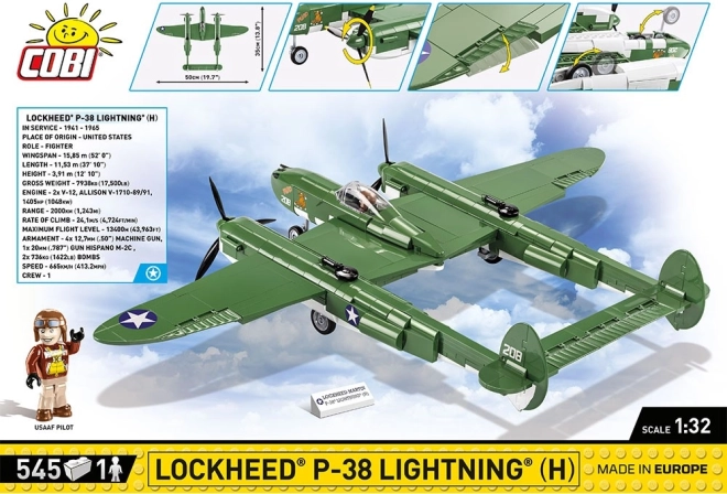 De COBI LOCKHEED P‑38 LIGHTNING is een uiterst gedetailleerde bouwset van een historisch vliegtuig met een unieke tweeboomsconstructie. Op schaal 1:32 bouw je een realistisch model met authentieke insignes, emblemen en nummer 208, geïnspireerd op het echte toestel met het hondje Pluto als symbool. De hoogwaardige prints zijn bestand tegen slijtage en temperatuur, zodat het model er ook bij intensief spelen mooi blijft uitzien.